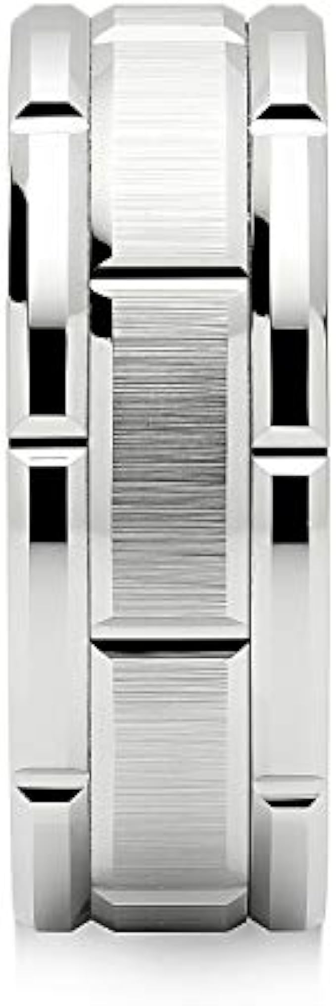 • CASUAL & MODERN: Tungsten band with brick pattern and Rhodium plated for a bride or groom offers affordable luxury without appearing fake