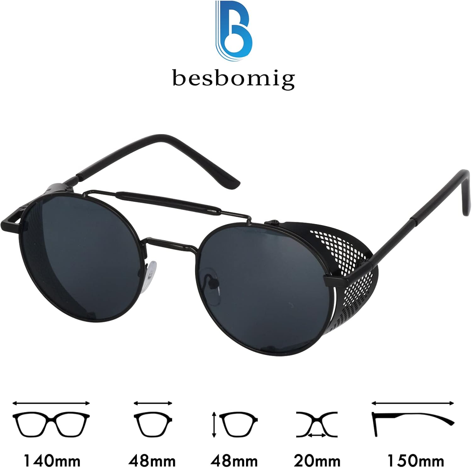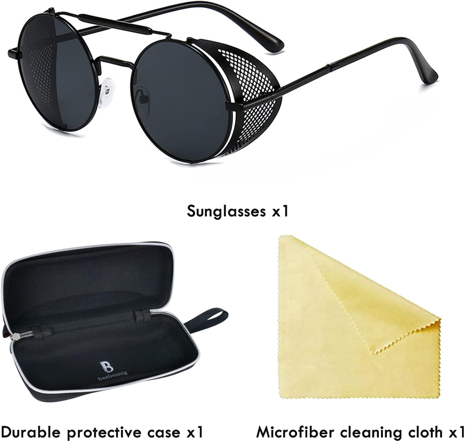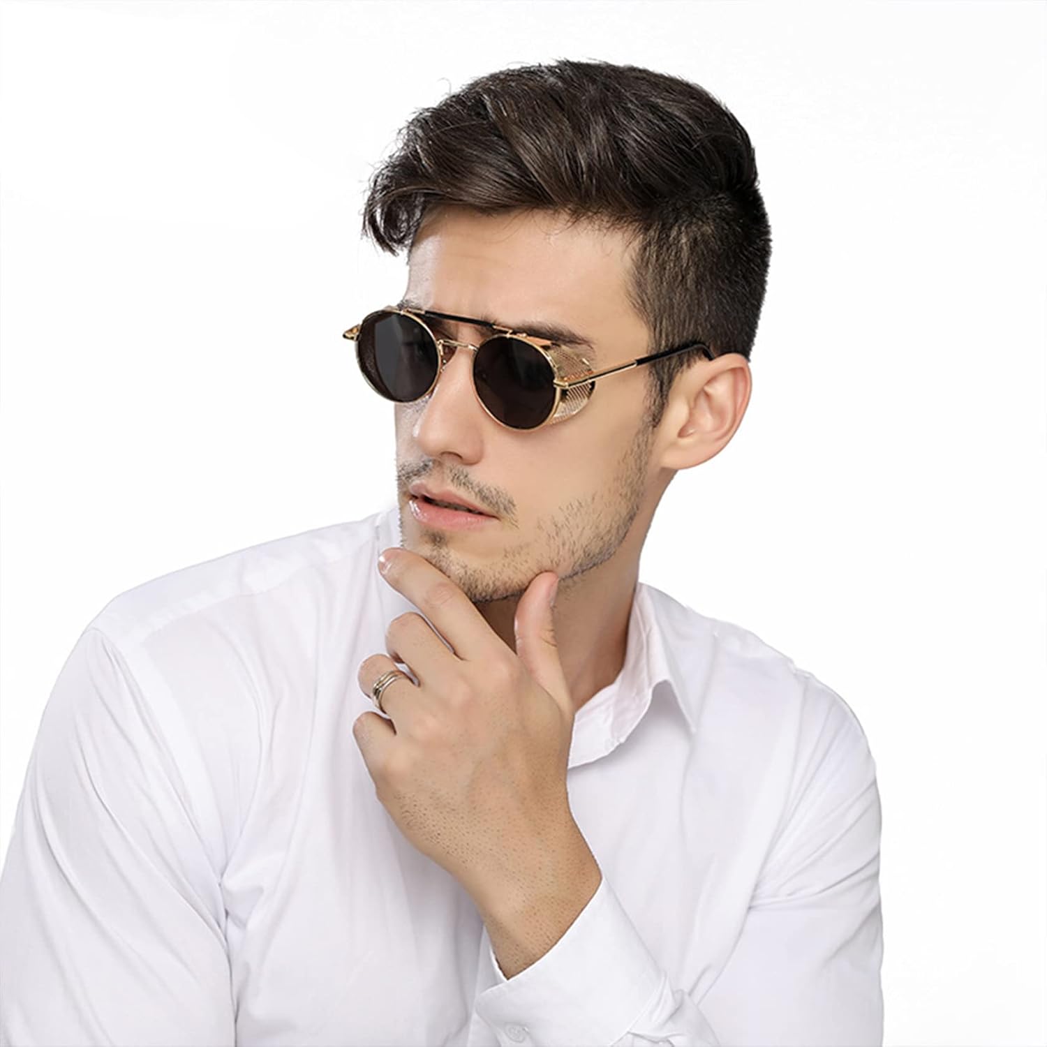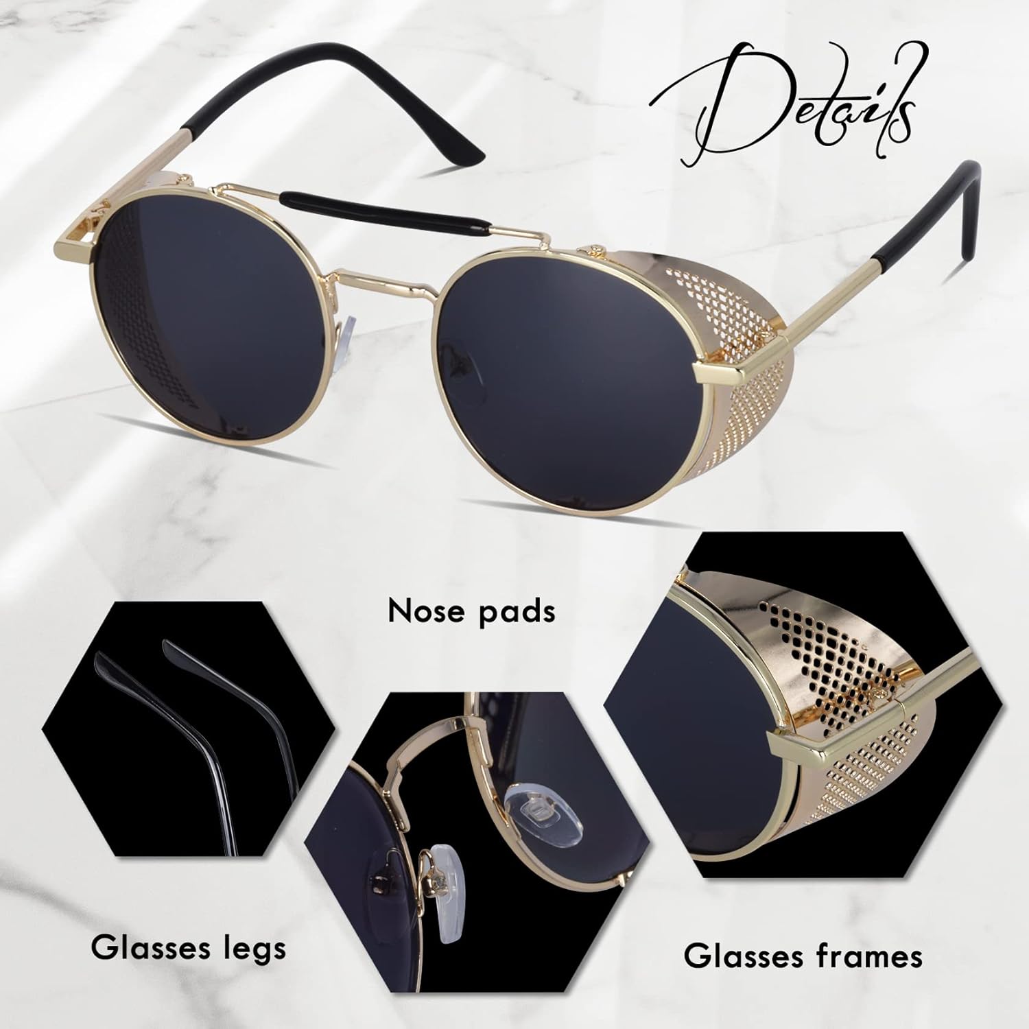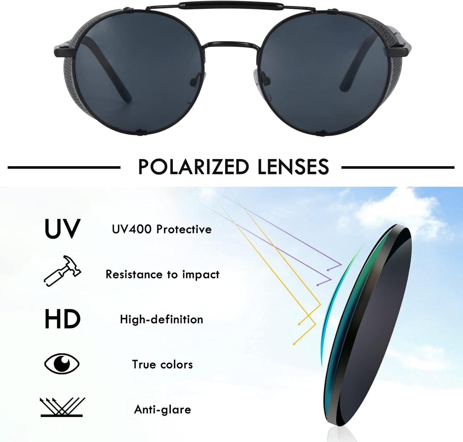 男士蒸汽朋克偏光太阳镜,专业紫外线防护,圆形哥特式色调女式,金属圆框