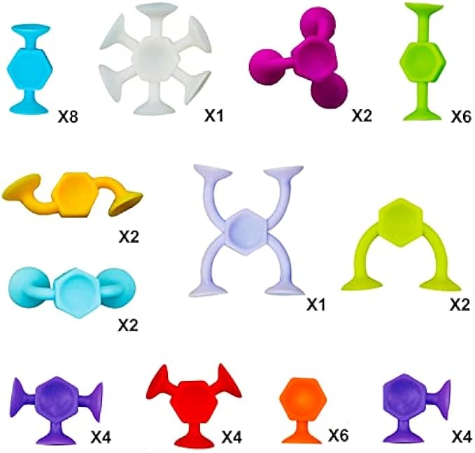 • 【Sution toys for baby】Sticky toys are the ideal suction toddler learning toys that stick to non-porous surfaces and to each other! Build, stick, connect, and pop! Break apart these little suckers for hours of fun.