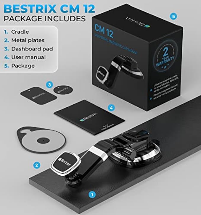 • SUPERIOR QUALITY - Bestrix magnetic car mount is made with the best and highest quality materials, superior quality ABS plastic that offers flexibility and durability, a strong gel base that will stabilize the product on your dashboard, securing your phone with super strong magnets under the silicon surface(Important note- the magnets can't harm your phone in any way).
