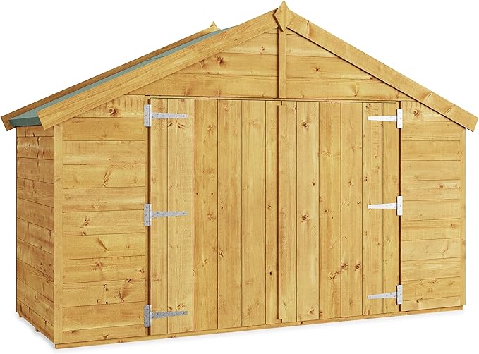BillyOh 3x8 Mini Master Tongue and Groove Construction Wooden Bike Shed, Windowless Bike Storage Shed Design, Extra Wide Double Doors, Durable Apex Roof for Secure Outdoor Equipment & Bicycle Storage