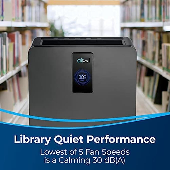 Bissell air400 Professional Air Purifier with HEPA and Carbon Filters for Large Room and Home, Quiet Bedroom Air Cleaner for Allergies, Pets, Dust, Dander, Pollen, Smoke, Hair, Odors, Smart
