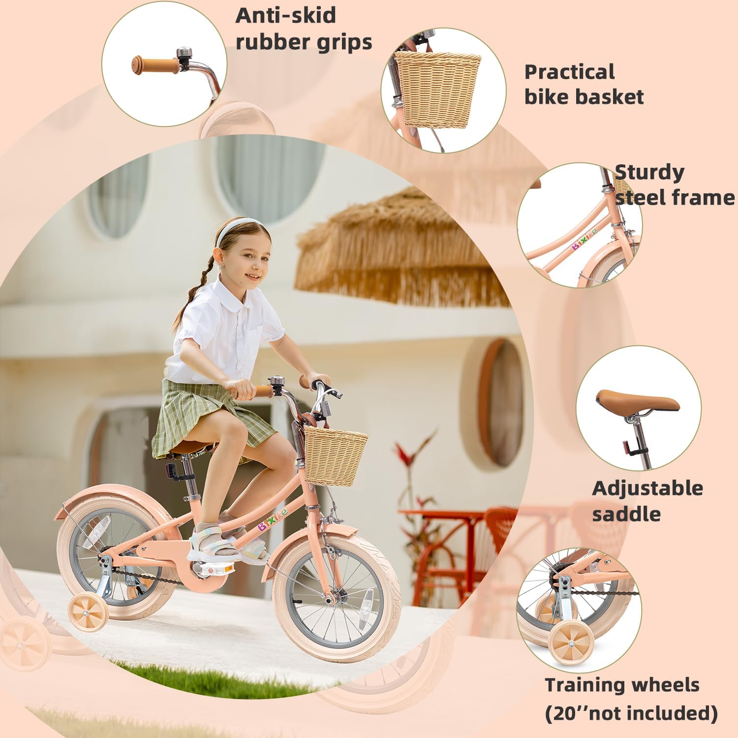 Bixike Retro Design Girls Bike with Basket for 4-13 Years Old Kids, 16 Inch Kid Bicycle for Girls with Bell and Training Wheels, 20 Inch with Kickstand,Multiple Colors