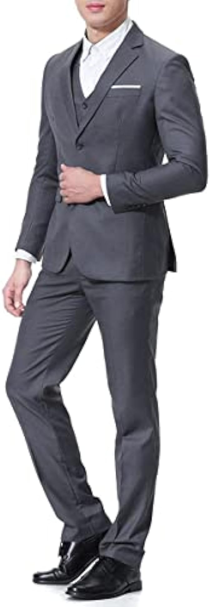 Cloudstyle Men's 3-Piece 2 Buttons Slim Fit Solid Color Jacket Smart Wedding Formal Suit