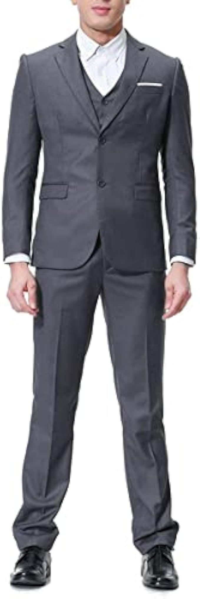Cloudstyle Men's 3-Piece 2 Buttons Slim Fit Solid Color Jacket Smart Wedding Formal Suit