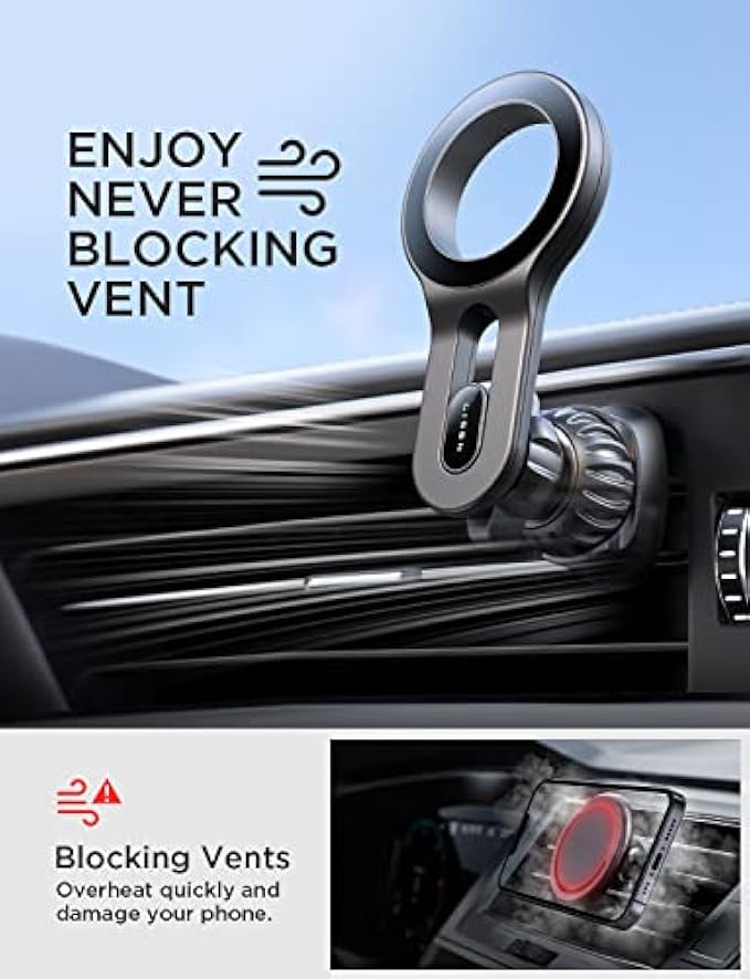 • ?More Stable, Less Blocking: LISEN brand laboratory has upgraded this magsafe car vent mount from 3 directions.①Upgrade extension arm to protect your phone overheating crash; ②Cell phone holder for car mount with most stable "Steel Hook";③Magnetic phone car mount that has the strongest magnet force, which can hold up to 10 iPhone 13 Pro Max. LISEN provides at least 1 years of user service.