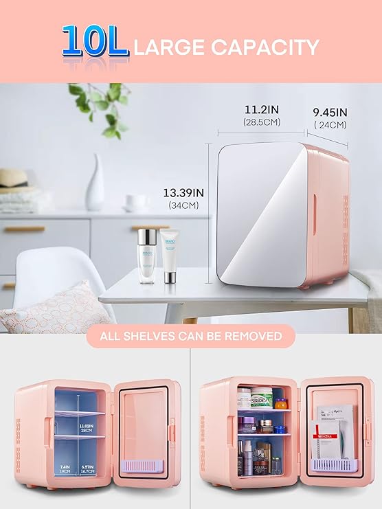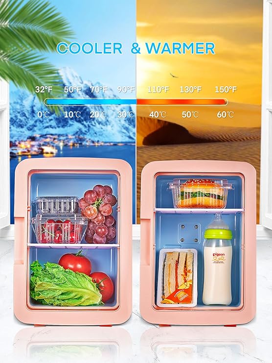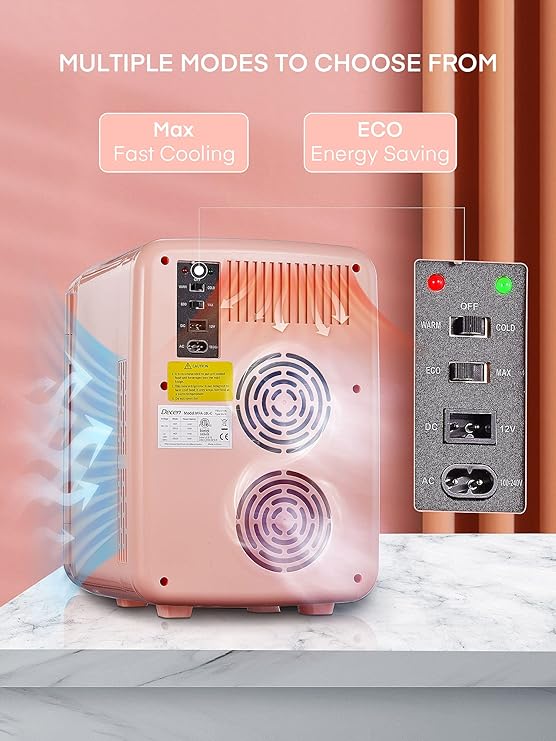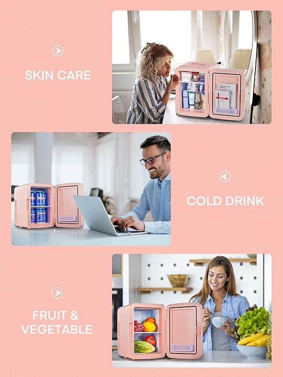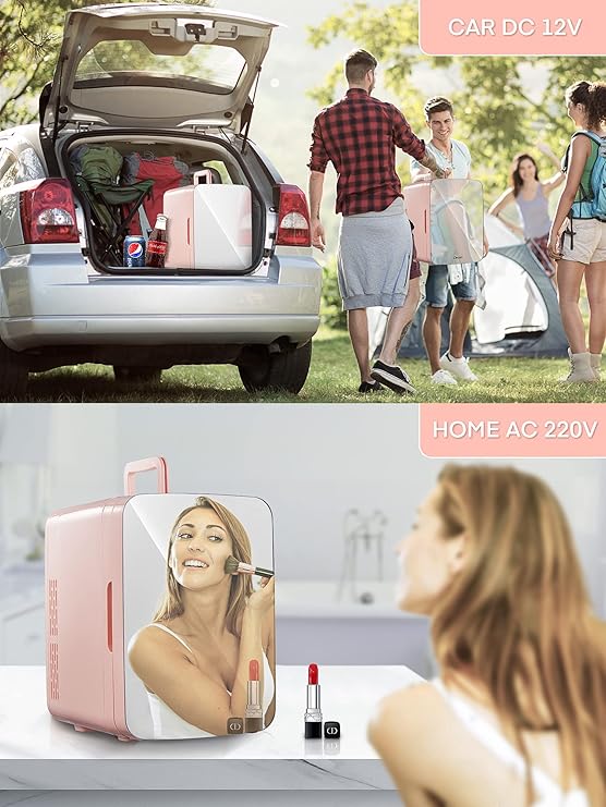 Cooluli Skincare Mini Fridge for Bedroom - Car, Office Desk & Dorm Room - Portable 4L/6 Can Electric Plug In Cooler & Warmer for Food, Drinks, Beauty & Makeup - 12v AC/DC & Exclusive USB Option, Pink