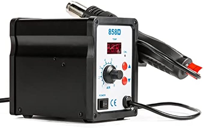 • WIDE APPLICATION: Designed for soldering or de-soldering SOIC, CHIP, QFP, PLCC, BGA, and other temperature-sensitive components. An essential tool for cell phone repair, laptop repair, or circuit boards soldering, this soldering tool can also be used for heat shrinking.