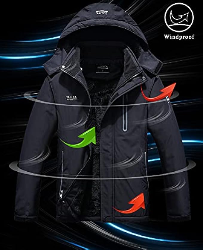 • Windproof:Adjustable hook & loop fastener cuffs and stretchable glove with thumb hole help seal in warmth.Inside windproof snap skirt, internal drawcord hem, detachable and adjustable storm hood help to keep wind out.Wear resisting soft shell is highly wind resistant.