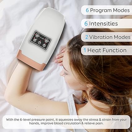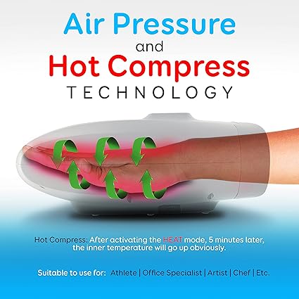 Electric Compression Hand Massager - Electric Acupressure Palm Massager w/ Air Pressure Thermal Compression for Acne, Carpal Tunnel, Hand Pain Relief, Numb Fingers (White)