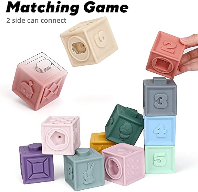 • Safe Materials & Teethers Toys - Soft blocks made of food grade material, BPA Free, Safe and Non-toxic. Smooth edges and soft surface are safe for baby to chew. These teething toys are perfect for babies who gets their first teeth. Note: Please wipe the toy with a damp cloth instead of washing the toy with water.