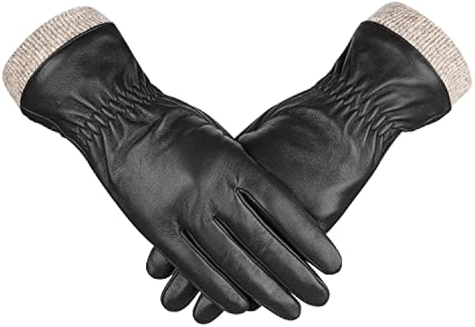 • ❤GENUINE LEATHER GLOVES❤: Outer are made of premium top layer genuine sheepskin leather with softness of touch, suppleness, strength and lasting comfort. Fully lined with Italian cashmere, let the gloves be your chic cold weather essentials.