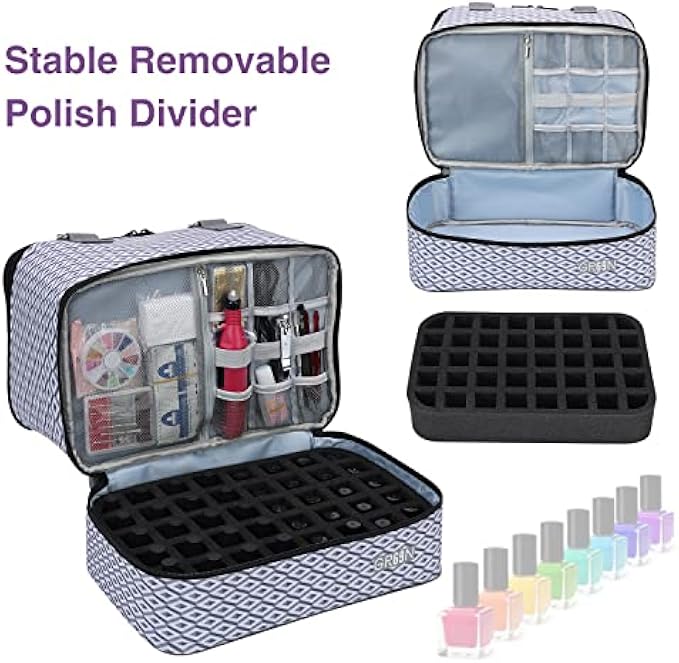 GR69N Nail Polish Organizer-Portable Nail Polish Holder Holds 40 Bottles(2ml-15ml) and 1 Nail Lamp-Upgraded Nail Polish Storage with Stable Divider (Patented Design-Bag Only)-L (Grey Multi)