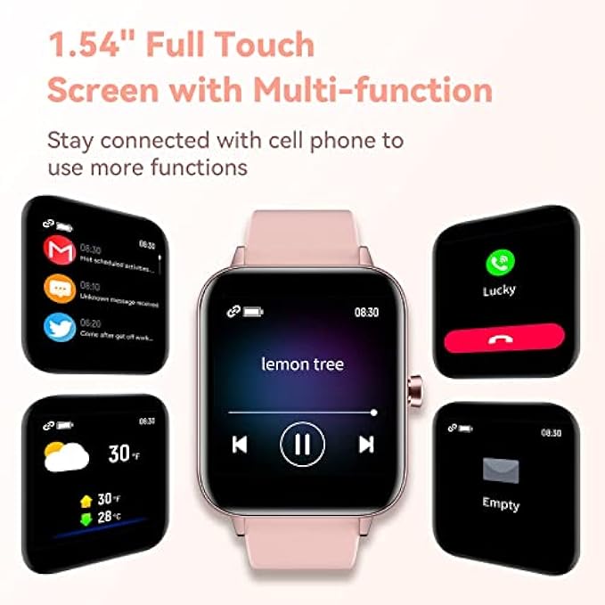 HAFURY Women Smart Watch, Smartwatch for Android/iOS Phones, Heart Rate Monitor, IP68 Waterproof Fitness Tracker Watch, Pedometer, Sleep Tracking for Women Men, Pink