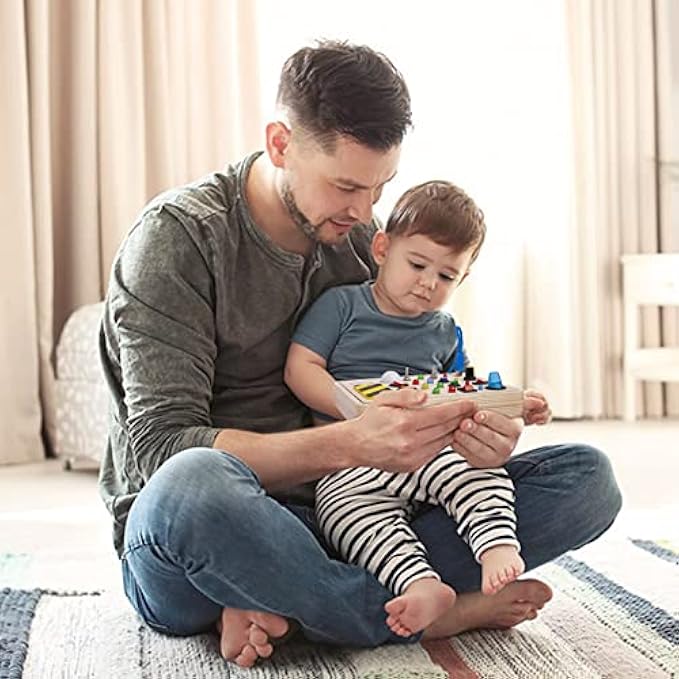 • ✅【Safety & High-Quality】- The Wooden busy board are made of natural wood along with the smooth corners and edges will perfectly fit in your child's tiny hands and ensure safe and independent use. Our montessori toys are well constructed and the size of buttons are perfect for toddlers to play easily.