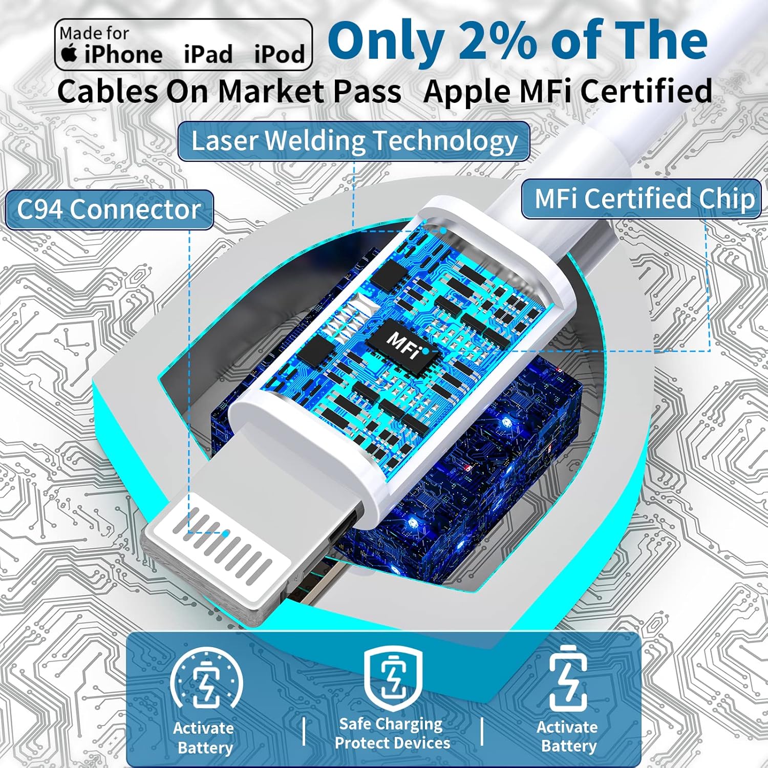 • 【Safe Charging】UL-certified iPhone fast Charger with Built-in protetion mechanism works intelligently to protect your iPhone/tablet/iPad/AirPods from overheating, over charging, over-current and over-voltage.FITINFUSER