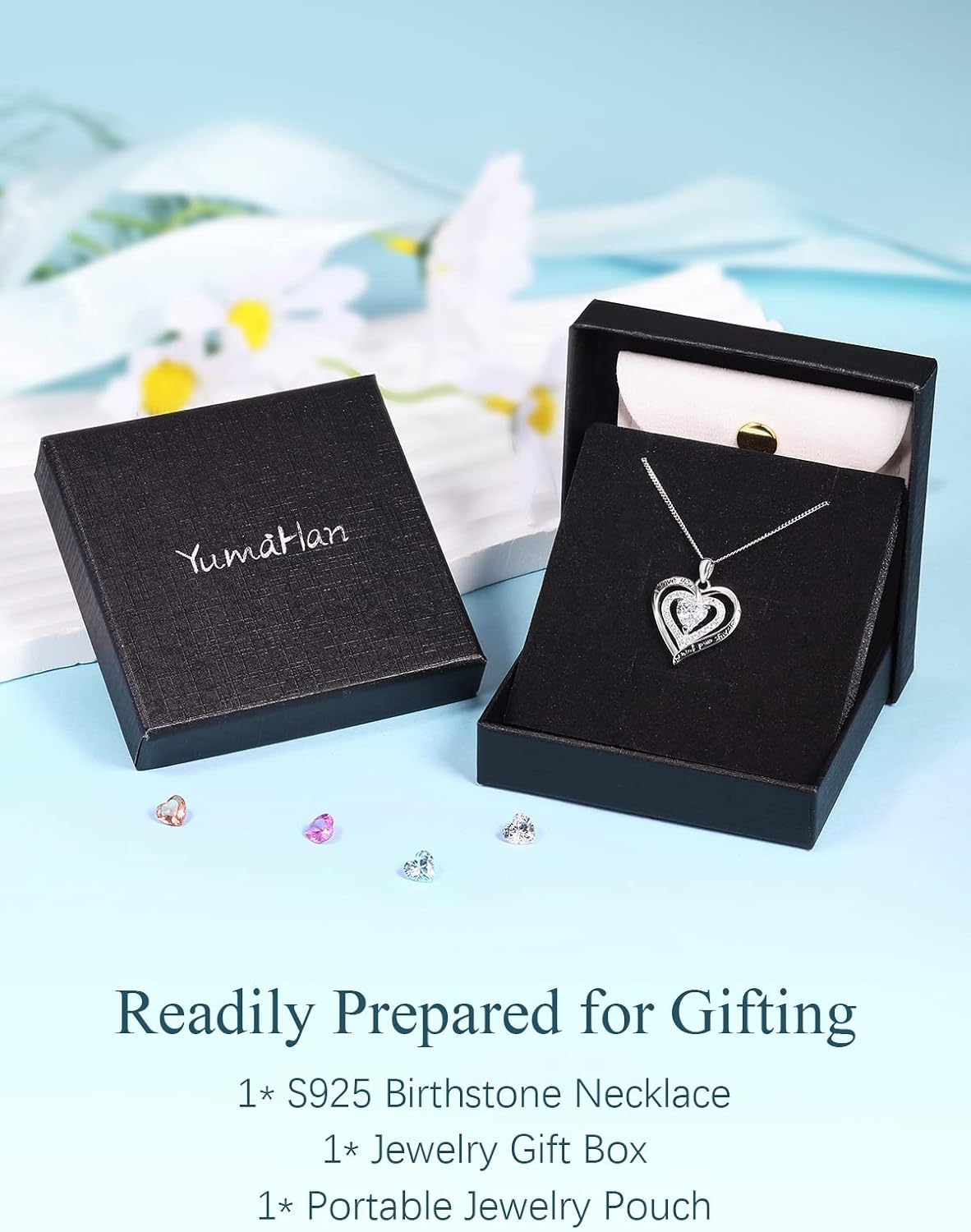 • MEANING: To love her is to admire her with heart, and to bring joy to her life. The interlocking heart pendant symbolizes love for each other, while the heart birthstone at its center means “You are in my heart”. This necklace will be a meaningful gift for the one you care.