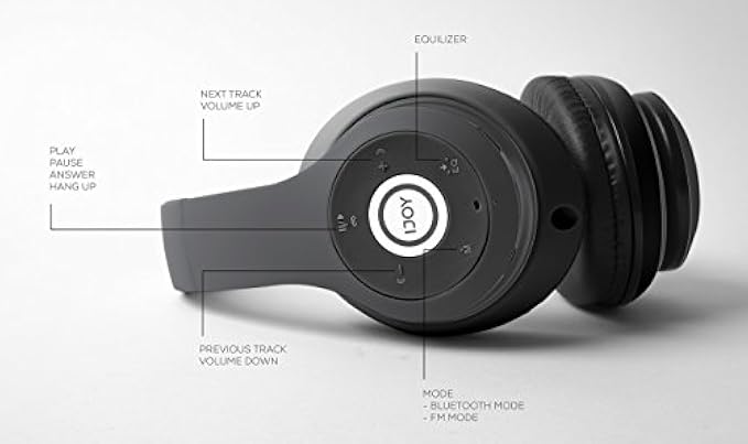 iJoy Matte Finish Bluetooth Headphones, Wireless Over Ear Foldable Headset with Built-in Microphone, FM, Micro SD Card Slot (Stealth)