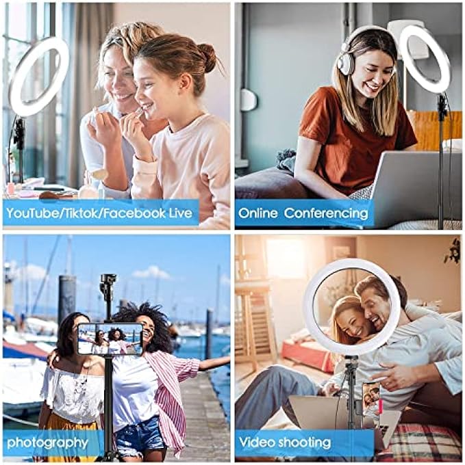 • 【Diverse Application 】 Great led ring light for daily work and life. Ideal for a makeup tutorial, Tiktok short-form mobile videos, Facebook, Instagram, YouTube video shooting & Live streaming, Zoom video conferencing, online teaching. Perfect for all kinds of close-up photography and filming. Such as fashion, advertisement, portrait, wedding. Making you shine like a star.