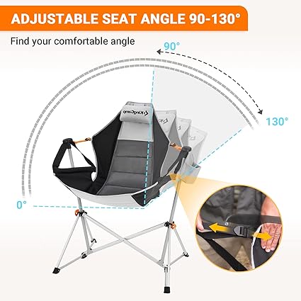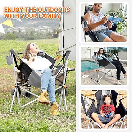 KingCamp Hammock Camping Chair Swing Rocking Chair For Adults Lawn Beach Camping Outdoor Portable Folding Chair Can Hold 300 Lbs With Adjustable Back Support Carrying Bag Cup Holder(Grey/Black)