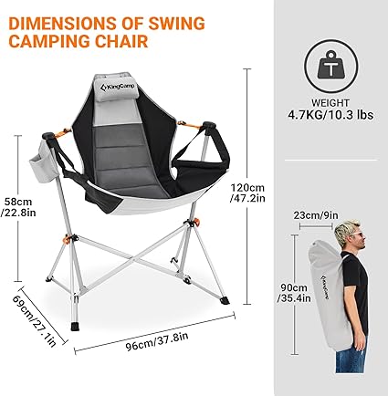 • KingCamp Hammock Camping Chair Swing Rocking Chair Adult Lawn Beach Camp Outdoor Portable Folding Chair Can Hold 300 Lbs With Adjustable Back Support Tote Bag Cup Holder
