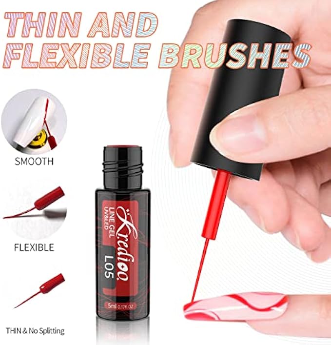 Kredioo Gel Polish Nail Liner Art 12 Colors Soak Off Golden Silver Neon Nails Polishes Thin Brush Nail Art Paint Lines Gift Pakcage Salon Quality