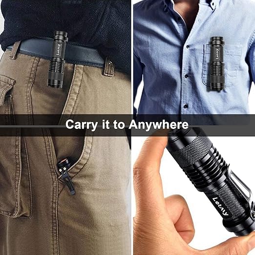 • 【Easy to Carry】only 3.6 inches length, this mini tactical flashlight fits in the palm of your hand, portable to carry with a metal clip. Our flashlights is convenient to slip into your pocket or clip on your belt or backpack. Perfect Christmas gifts for men, kids...!