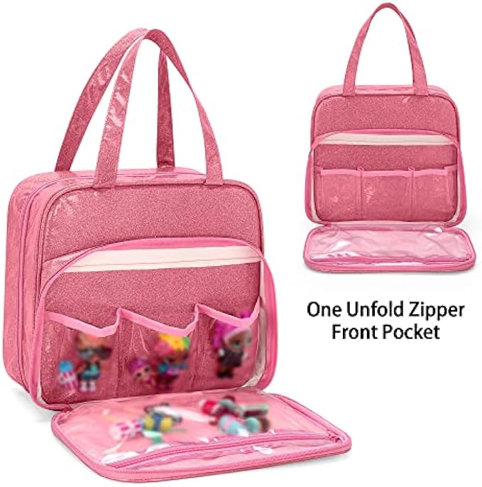 • 【Perfect for Collection】: Bag Size: 11.5 x 5.5 x 10.4 inch. Unfold Size: 11.5*11inch. The color is lovely sparkle pink, girls absolutely loves carrying them around. LoDrid doll carrier is an ideal storage case for little toys and great to travel.