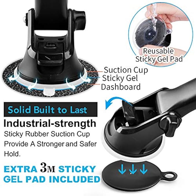 • Super Solid Suction Cup: Our patented industrial-strength suction cup base provides a strong, secure hold power on the dashboards, windshields, countertops, desks, tables, and other surfaces. (Please avoid to exposing it to the sun at high temperatures for a long time)