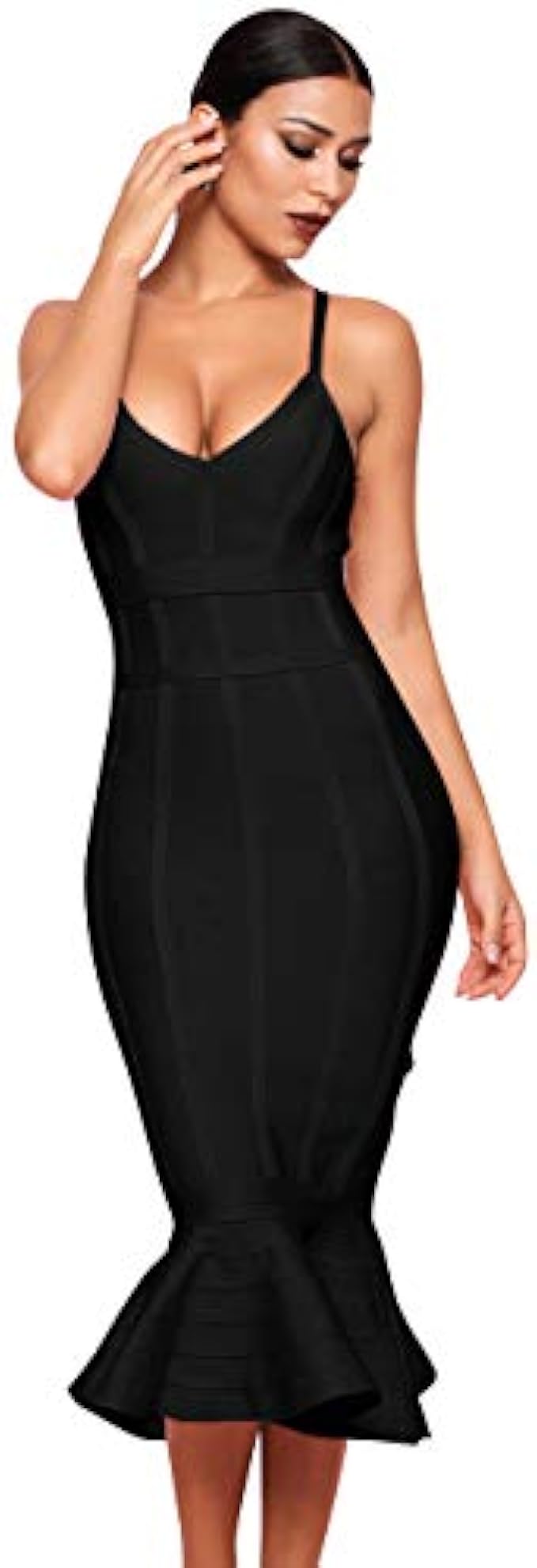 Maketina Women's Mermaid Spaghetti Strap V Neck Bodycon Midi Cocktail Bandage Dress