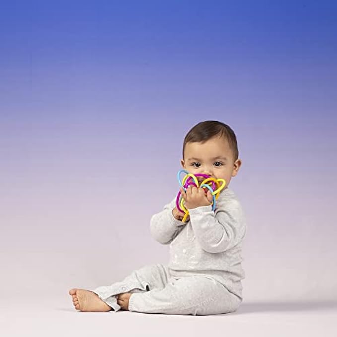 • BABY TEETHING TOY MADE FOR LITTLE HANDS:  The Winkel features a mesmerizing maze of soft, continuous BPA-free teething tubes, and can be refrigerated for additional soothing comfort - a perfect baby chew toy for tiny hands.