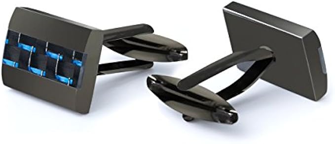 Mr.Van Men's Carbon Fiber Cufflinks Set Handcrafted Rhodium Plated Cuff Links for Business Wedding