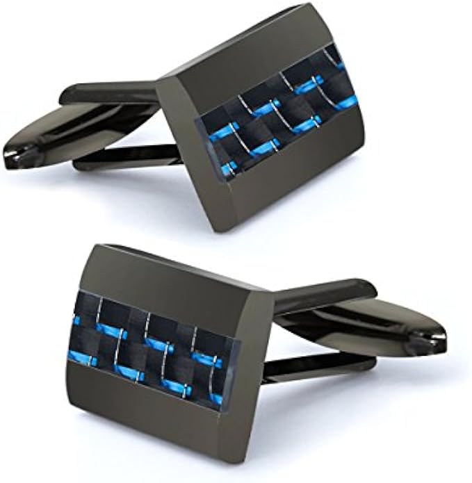 Mr.Van Men's Carbon Fiber Cufflinks Set Handcrafted Rhodium Plated Cuff Links for Business Wedding
