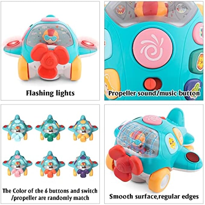 • 【Cute Sound Effect and Flashing Light】:The plane have a real take-off sounds effect, 6 color of the button with different sounds effect. Such as some animal sounds, melody with the flashing lights on the wings which can attract baby's attention.