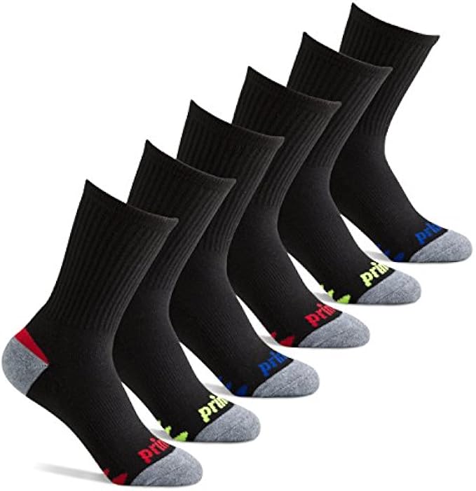 Prince Boys' Crew Length Athletic Socks with Cushion for Active Kids (6 Pair Pack)