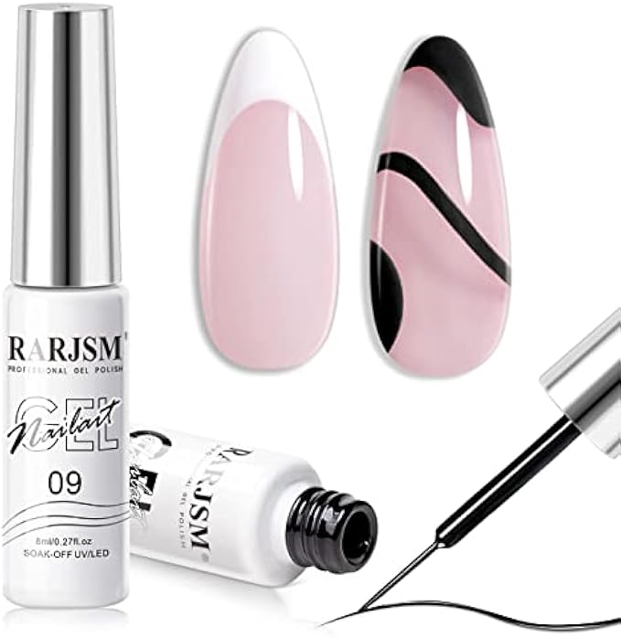 RARJSM Nail Art Gel,Liner Gel Polish,Black White Nail Design Polish Painted Gel Nail Polish Set 2Pcs Soak off Curing Requires 8ml Build in Thin Brush for Home Salon Diy Nail French Manicure Painting