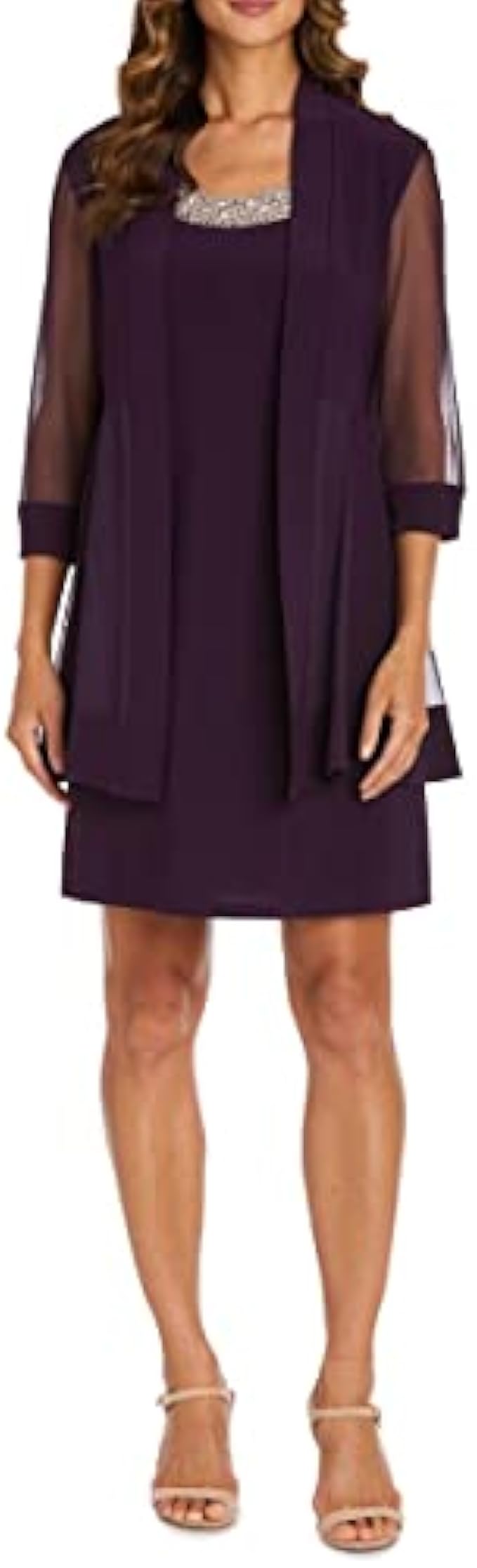 R&M Richards Women's 2 Piece Mesh Panel Beaded Neck Jacket Dress