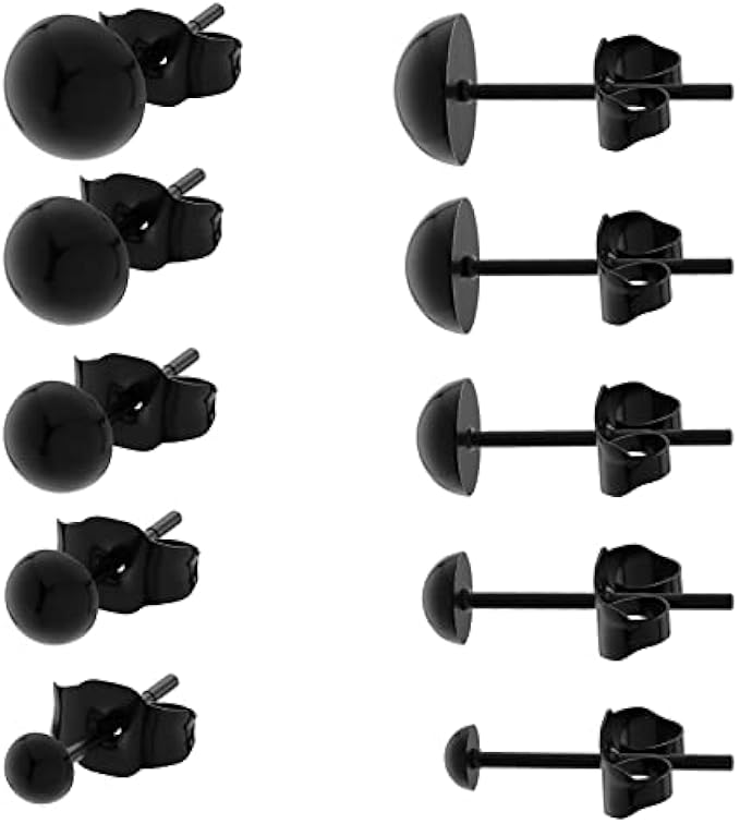 • Size: Pin size: length 11mm, spherical width 3, 4, 5, 6, 6.5mm. It is perfect for those who have multiple piercing, you can wear more than one size/set at a time. Cost-effective 5 pairs of earrings set is your wise choice.