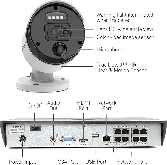 • 【4K UHD DVR CCTV Security Camera Syetem】: Protect your property with this Coax cable Security Camera Syetem ; flashing lights deter intruders; Black and White night vision up to 130ft.