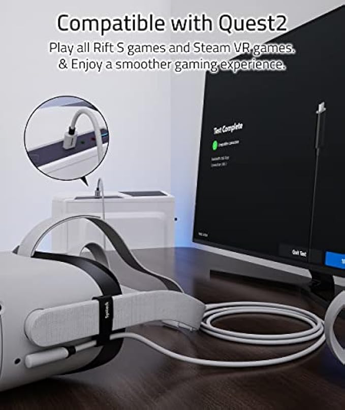• Excellent Link Performance: This cable supports USB 3.0 transmission speed. Stable and fast data synchronization working with sustained and reliable current brings you a smooth VR gaming experience. The attached velcro strap fixes the cable and Quest2 to prevent disconnection during movement. Note: When connecting to your computer, please insert this USB 3.0 cable into the USB A 3.1/ USB A 3.0 port.
