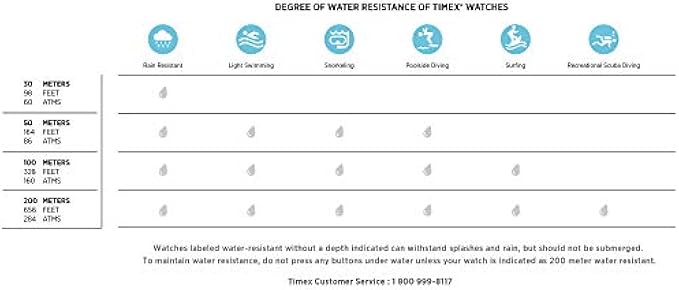 • Water resistant to 99 feet (30 M): withstands rain and splashes of water