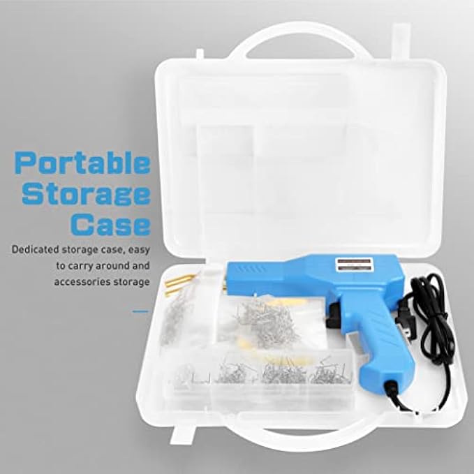 • Easy to Use - Artificially designed handle is comfortable to grip. Simple operation, just press the button to heat and weld the staples into the plastic. The head light illuminates when in use. All in a decent suitcase, easy to carry and store. We provide 1-year warranty for our Plastic Welding Gun. If you have any issues, please feel free to contact us.