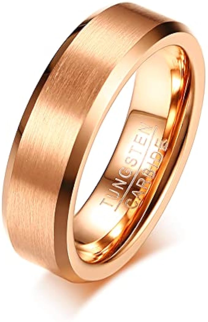 • SPECIFICATION: Width 6mm, gold plated color, 4 colors including gold, rose gold, silver and black, genuine tungsten carbide, high polish finish, classic dome plain design, never out of date.