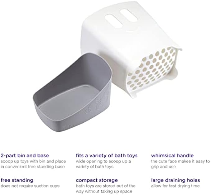 • EASY TO USE: Scoop up bath toys with the handle after bathtime, place bin in base, and leave until next bath time