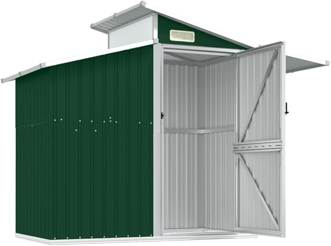 vidaXL Garden Shed Outdoor Storage Shed House Bike Bin Store and More Lawn Patio Tool Storage Green 270x130x208.5 cm Galvanised Steel, (316242)