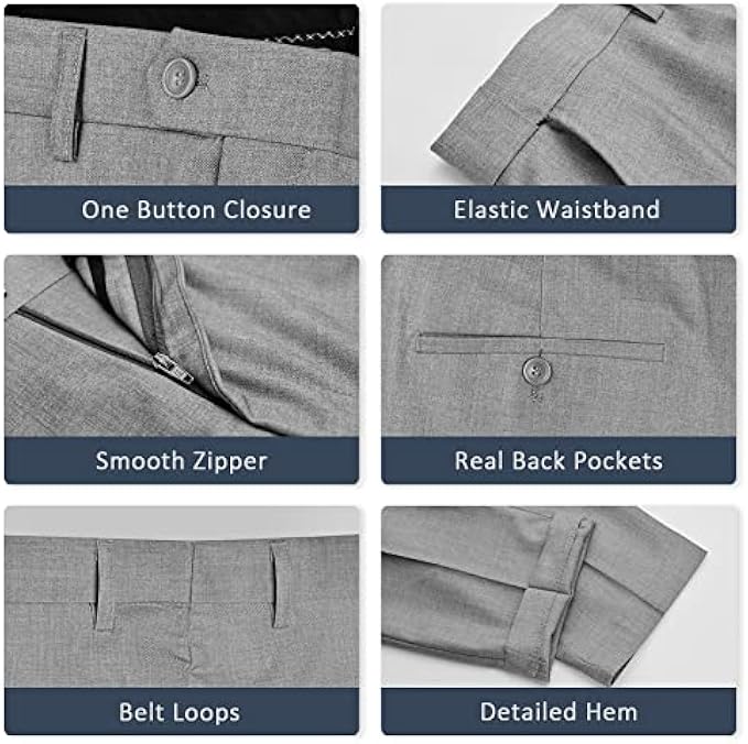 • FEATURE: Suit Jacket: Two Button Closure, Single Breasted, Notched Lapel, Single Vent, Slim Fit Style; Pants: Flat Front, Zipper Fly, Button End and Adjustable Waist Band.