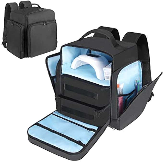 • 【Keep all your nail products in one place】Our nail polish organizer backpack has plenty of space for all your nail stuff including the uv LED light,nail drill file, small bottle of polish remover, and other nail accessories.It keeps nail polish,nail lamp and manicure tools in one safe place and organized,nothing will ever get lost again.