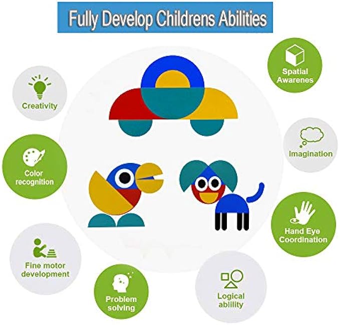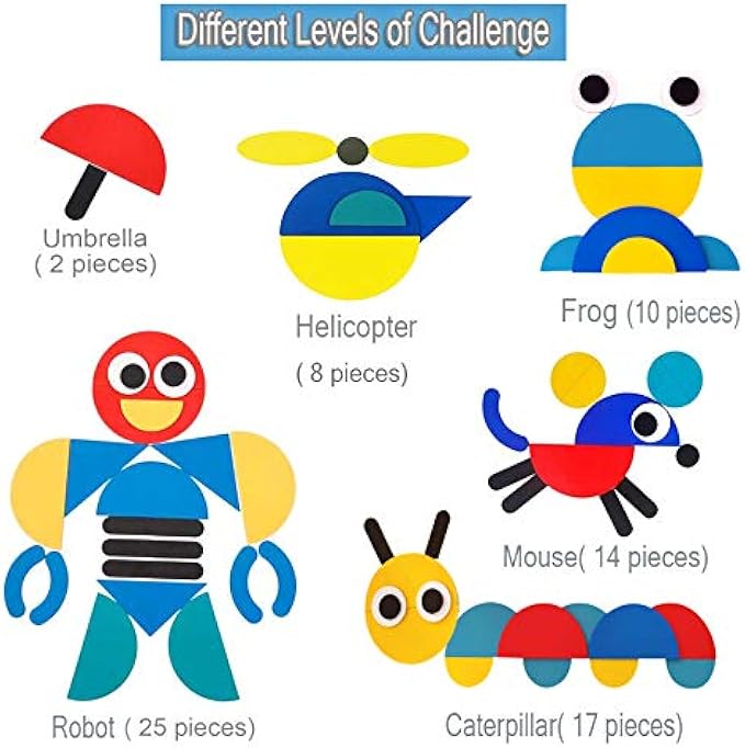 • 【FUN LEARNING WAY】: Bright colors and various shapes promote children's thinking ability. Encourage creativity and enrich imagination in repeated combination pattern effort. It allows you to create many different images so it never gets boring.